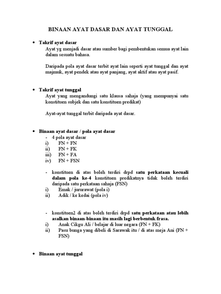 Binaan Ayat Dasar Dan Ayat Tunggal Pdf